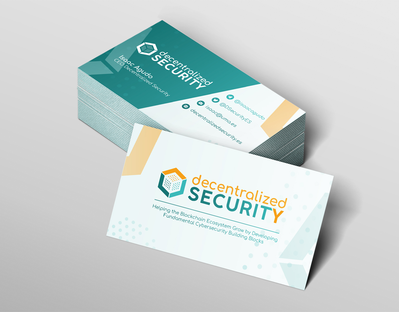 Logotipo y tarjeta de visita de la empresa de seguridad informática y blockchain Decentralized Security