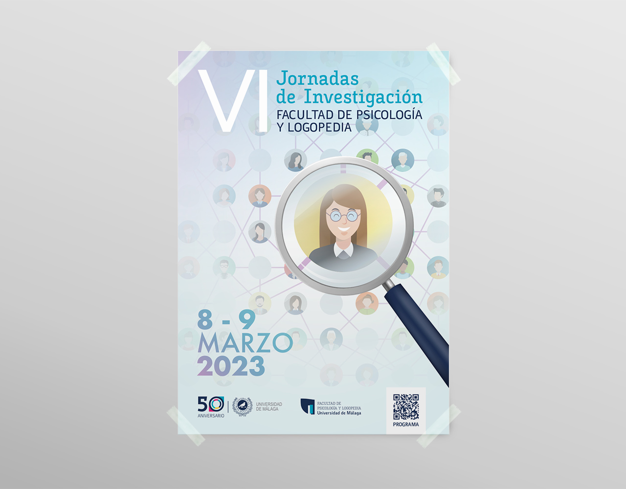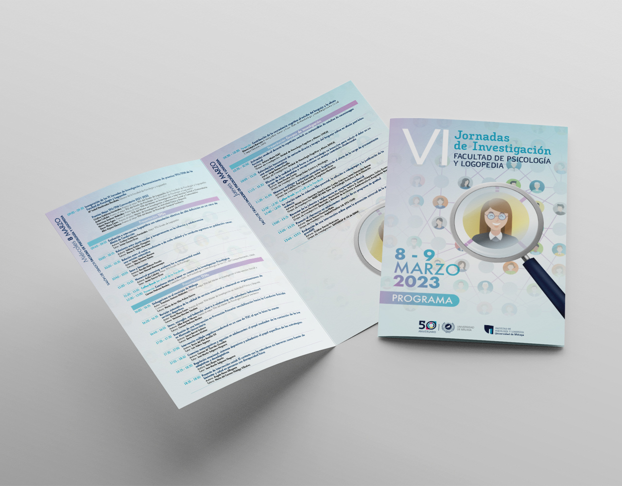 Cartel y díptico del Libro de contribuciones de las VI Jornadas de Investigación de la Facultad de Psicología y Logopedia de la Universidad de Málaga (2023)