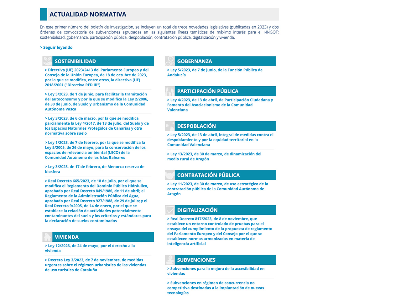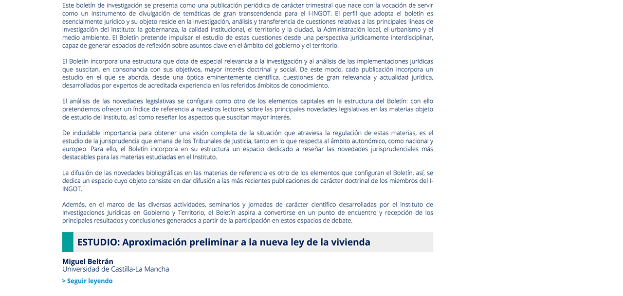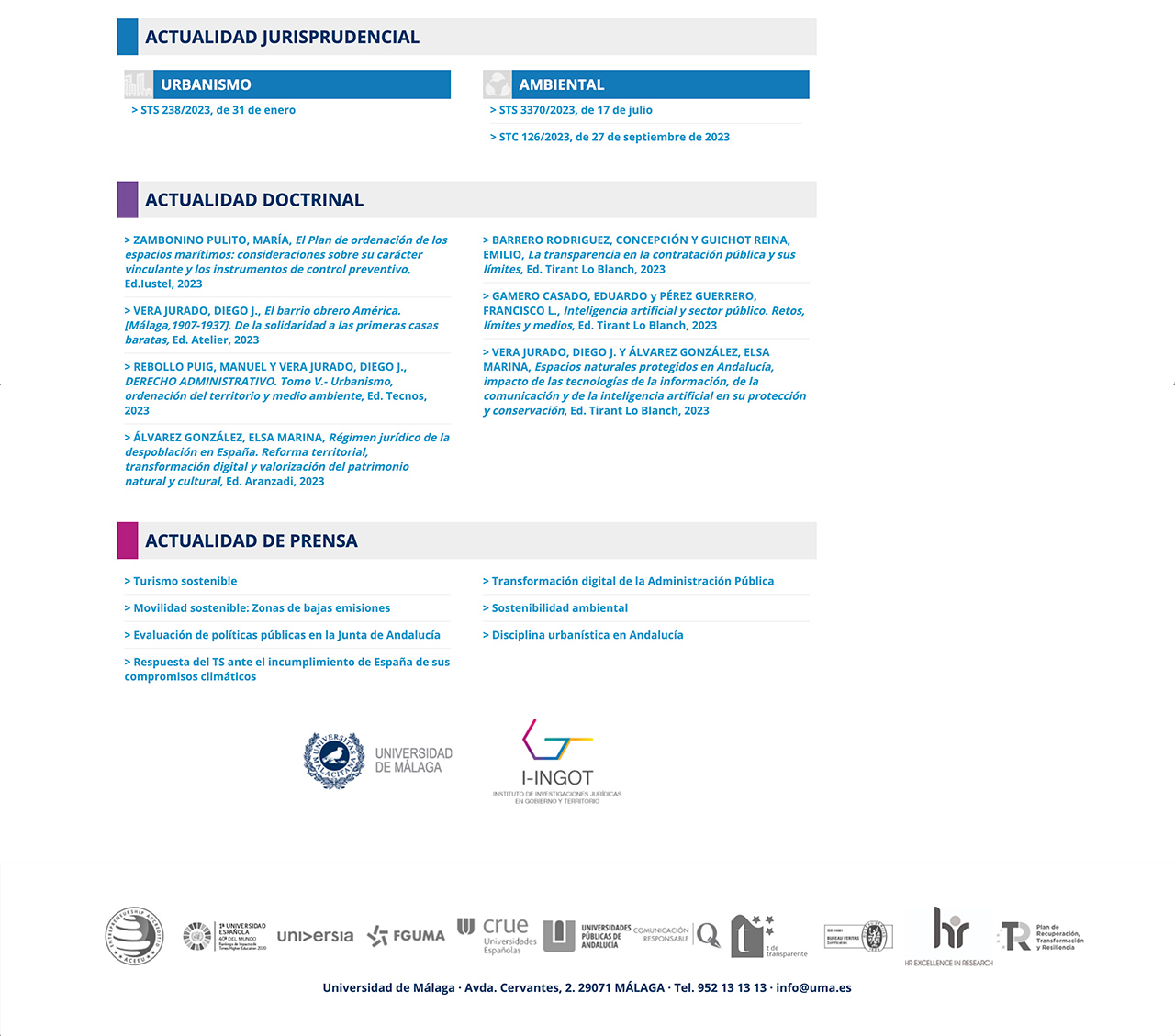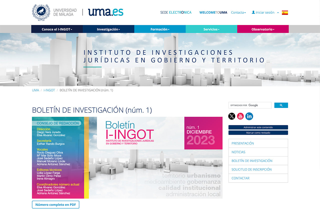Página web del Instituto de Investigaciones Jurídicas en Gobernanza y Territorio (I-INGOT)