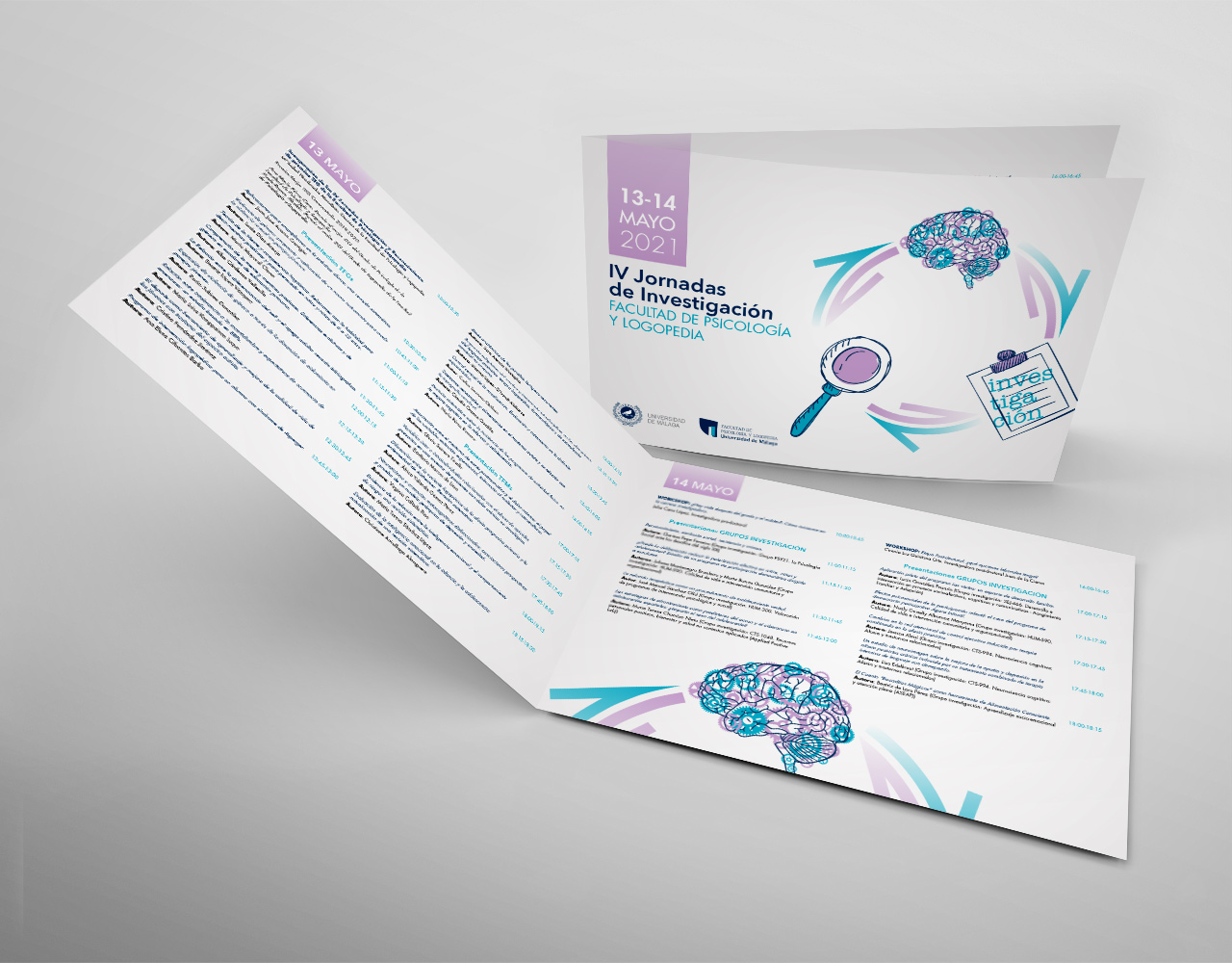 Cartel y díptico del Libro de contribuciones de las IV Jornadas de Investigación de la Facultad de Psicología y Logopedia de la Universidad de Málaga (2021)